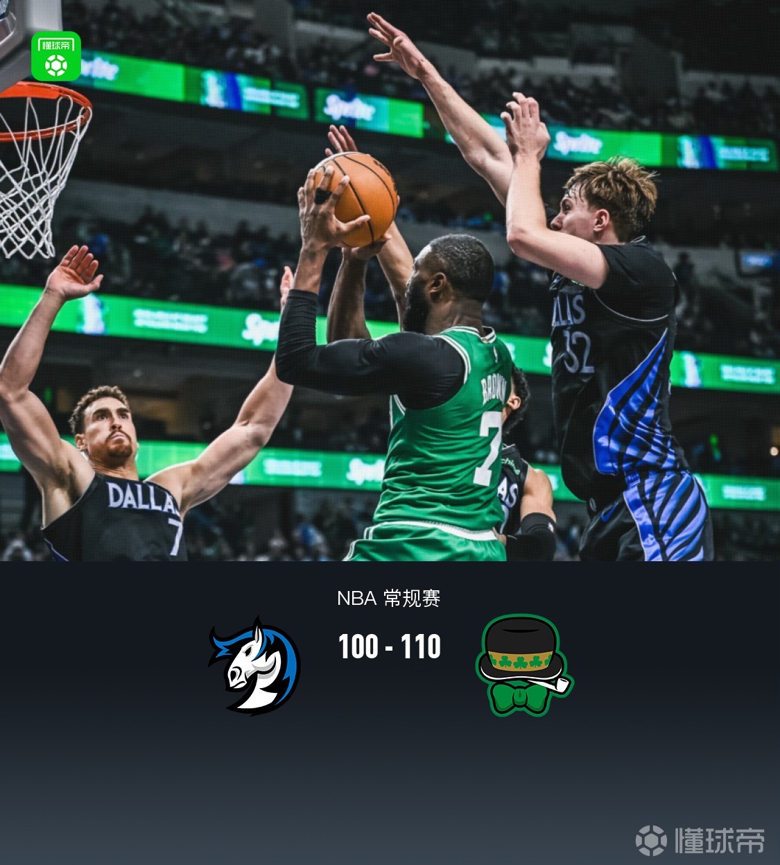 凯尔特人110-100力克独行侠,布朗33+11,弗拉格空砍36分