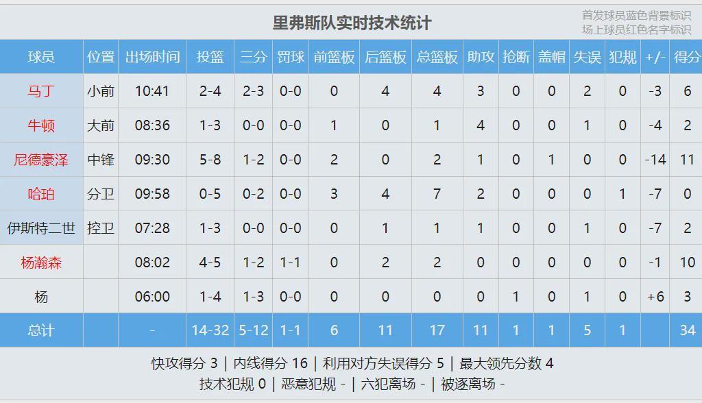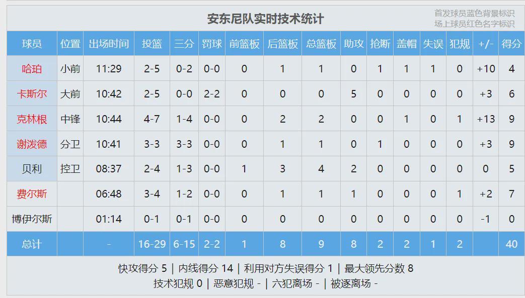 迪伦-哈珀迎着哥哥投进绝杀,安东尼队40-34淘汰小里弗斯队。杨瀚森替补出战8分钟,投篮5中4,三分2中1,罚球1中1,得到10分2篮板。得分全场第二高,仅次于尼德豪泽的11分。单场10分也超过了小杨常规赛最高分(9分)。