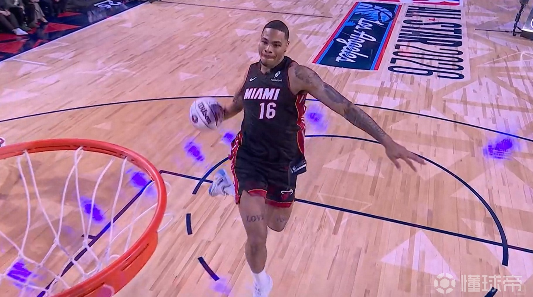 凯沙德-约翰逊底线助跑,完成胯下扣篮,得到49.6分。