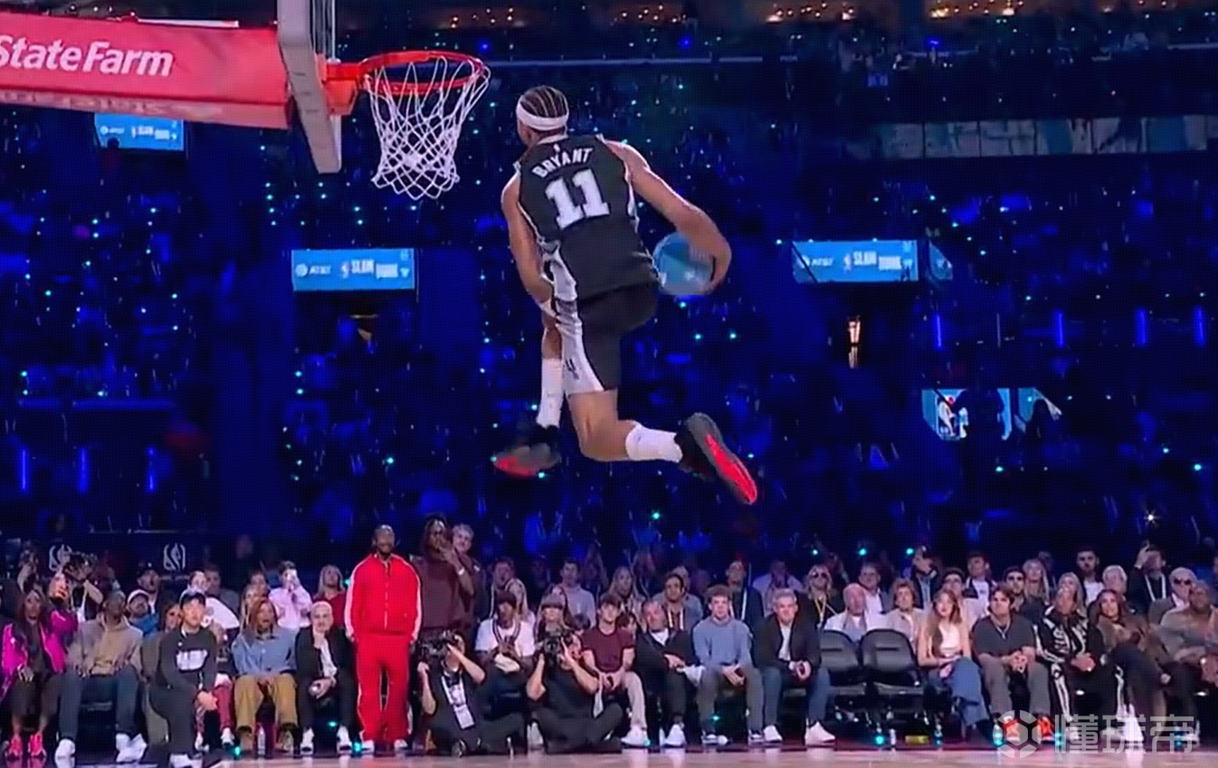 卡特-布莱恩特完成胯下大风车,得到本次扣篮大赛唯一一个满分扣篮,并将字母哥惊出“表情包”。