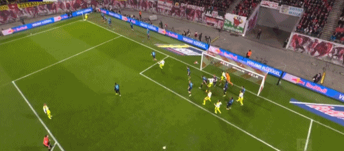 第28分钟,鲍姆加特纳抢点射门,球滑门而过