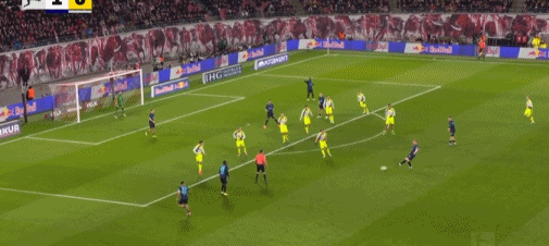 第20分钟,迪奥曼德晃动送助攻,鲍姆加特纳破门,莱比锡1-0多特