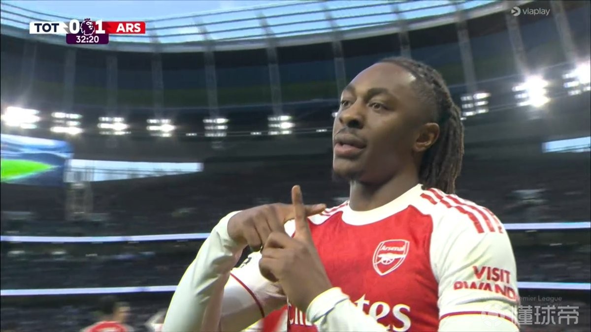 此役客场对阵热刺,首发出战的埃泽在上半场第32分钟破门,帮助阿森纳取得1-0领先。