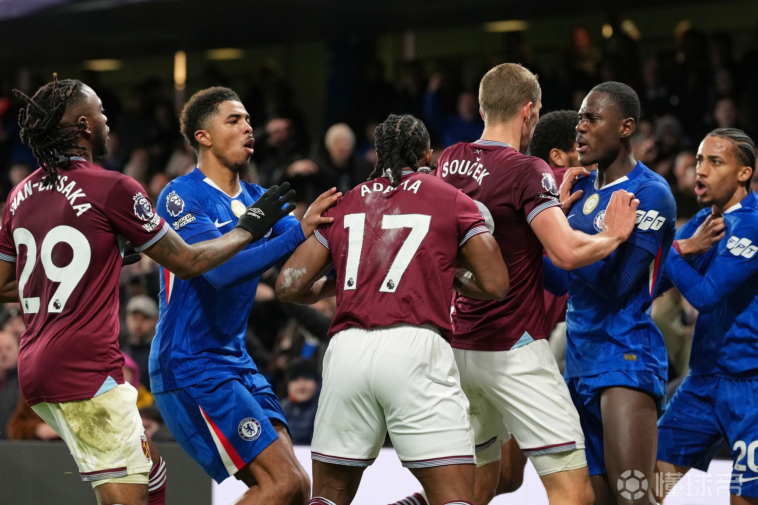 在那场比赛的伤停补时阶段,西汉姆联队员阿达玛-特拉奥雷在一次争抢后抱摔库库雷利亚,随后托迪博飞身锁喉若昂-佩德罗,场面一度陷入混乱,裁判最终向托迪博出示红牌,若昂-佩德罗和阿达玛-特拉奥雷分别被出示黄牌。