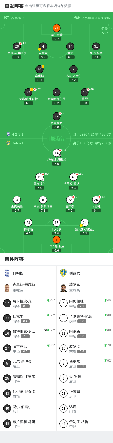 第49分钟,卢卡斯-恩梅加内切劲射破门,利兹联1-0伯明翰